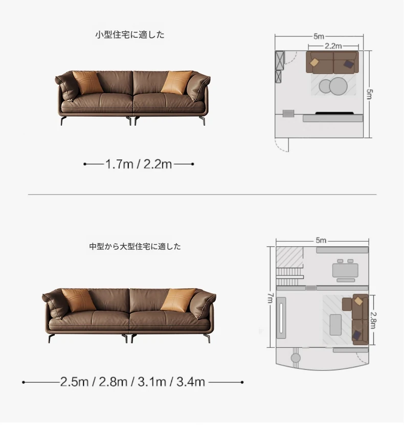 イタリアンミニマリズム真皮ソファ|上質な牛革使用|リビングにぴったりの小型デザイン|軽やかなラグジュアリー感|モダンでレトロな一字型|空間を引き立てるシンプルな美しさ!
