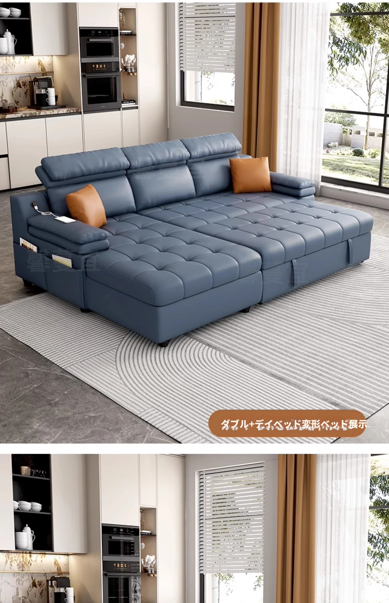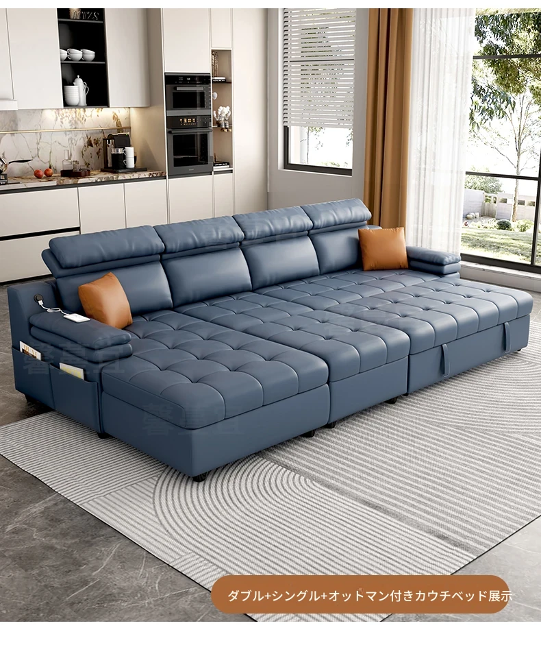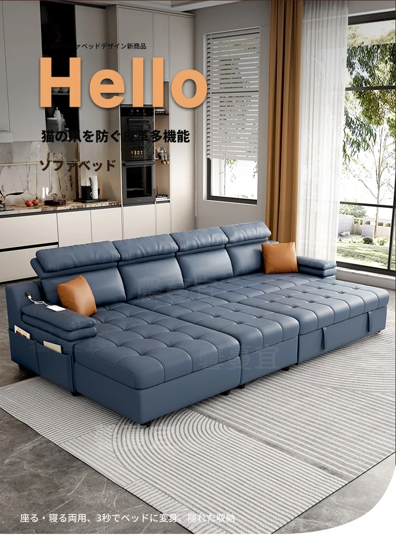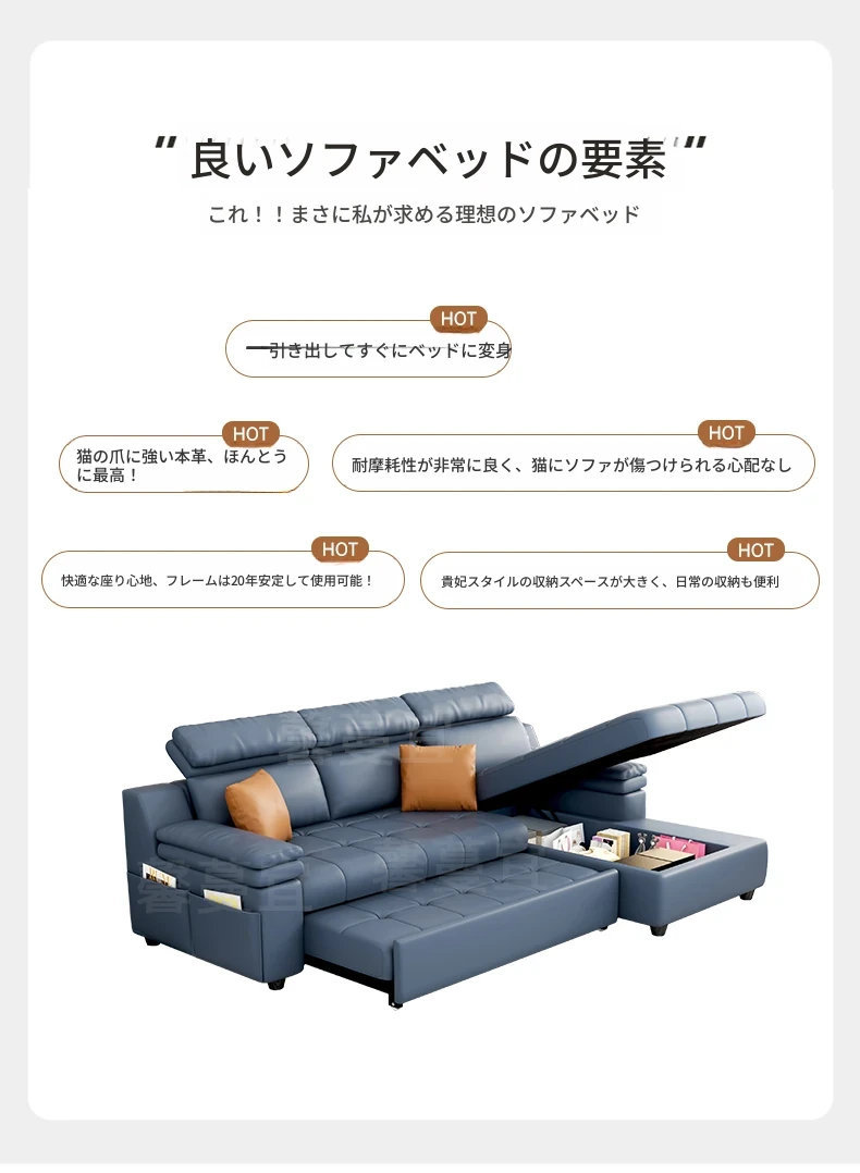折りたたみソファベッド 小型住宅にぴったり!多機能収納付き・貴妃スタイルの実木製で、猫の爪とぎも対応!引き出し式で伸縮可能、限られたスペースを有効活用!