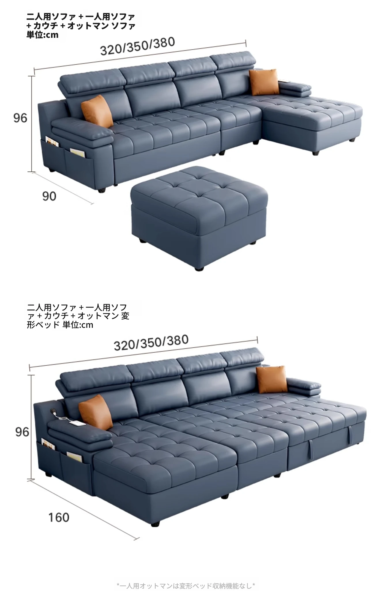 【ラグジュアリーラテックスモデル】ダブル+シングル+フェイスタイプ3.8m【フットスツール付き】