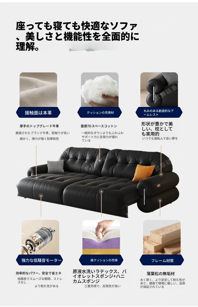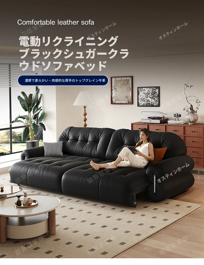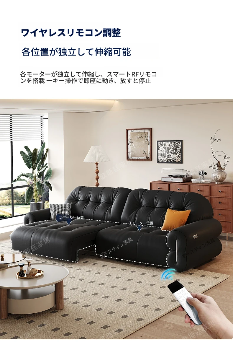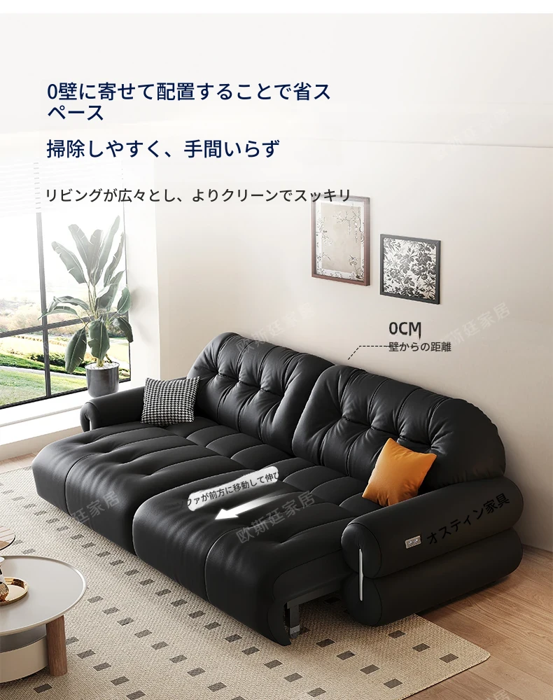 オスティン2025新作 本革電動ソファベッド 多機能・ゼロ距離壁付け・伸縮可能 小型居住空間に最適なストレートソファで、快適なリラックスタイムを実現!