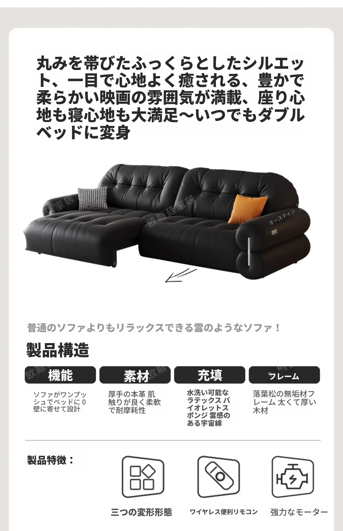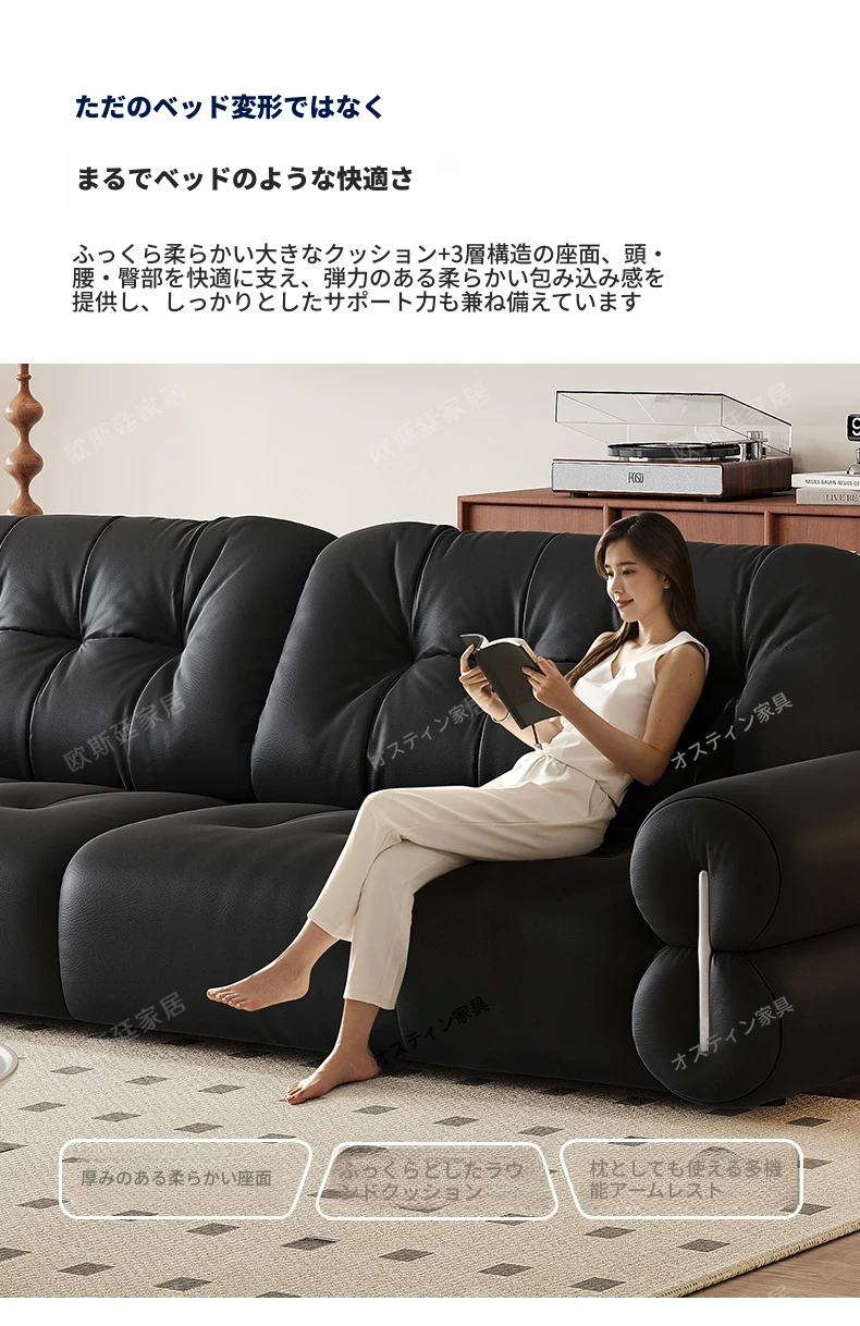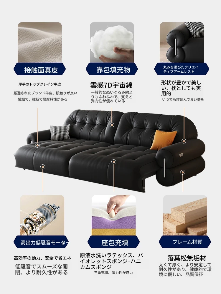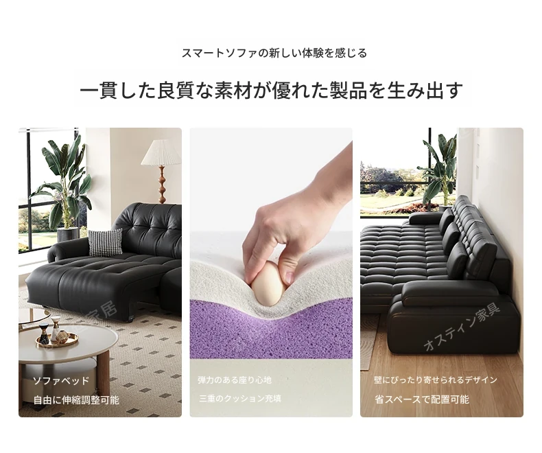 オスティン2025新作 本革電動ソファベッド 多機能・ゼロ距離壁付け・伸縮可能 小型居住空間に最適なストレートソファで、快適なリラックスタイムを実現!