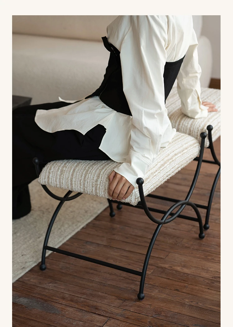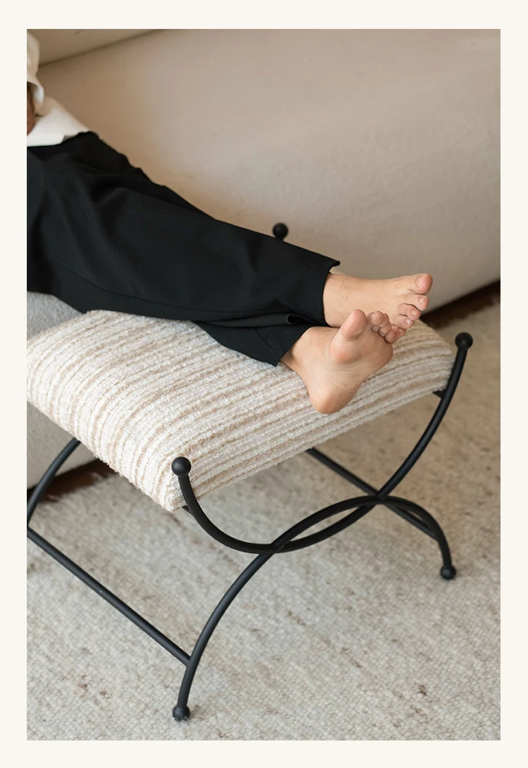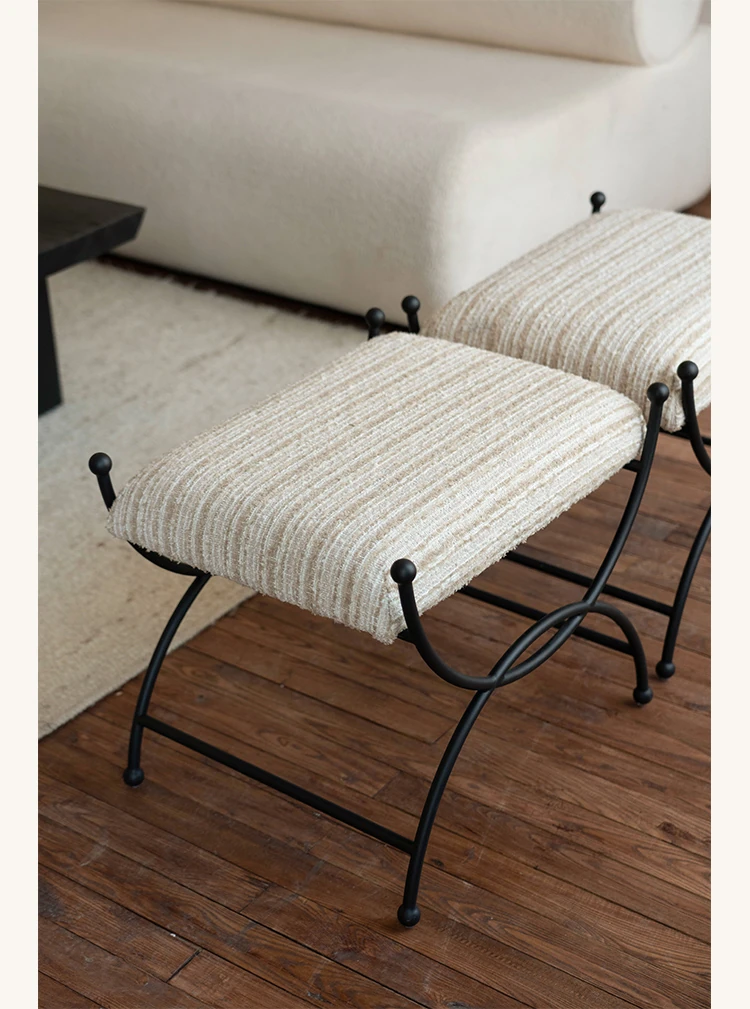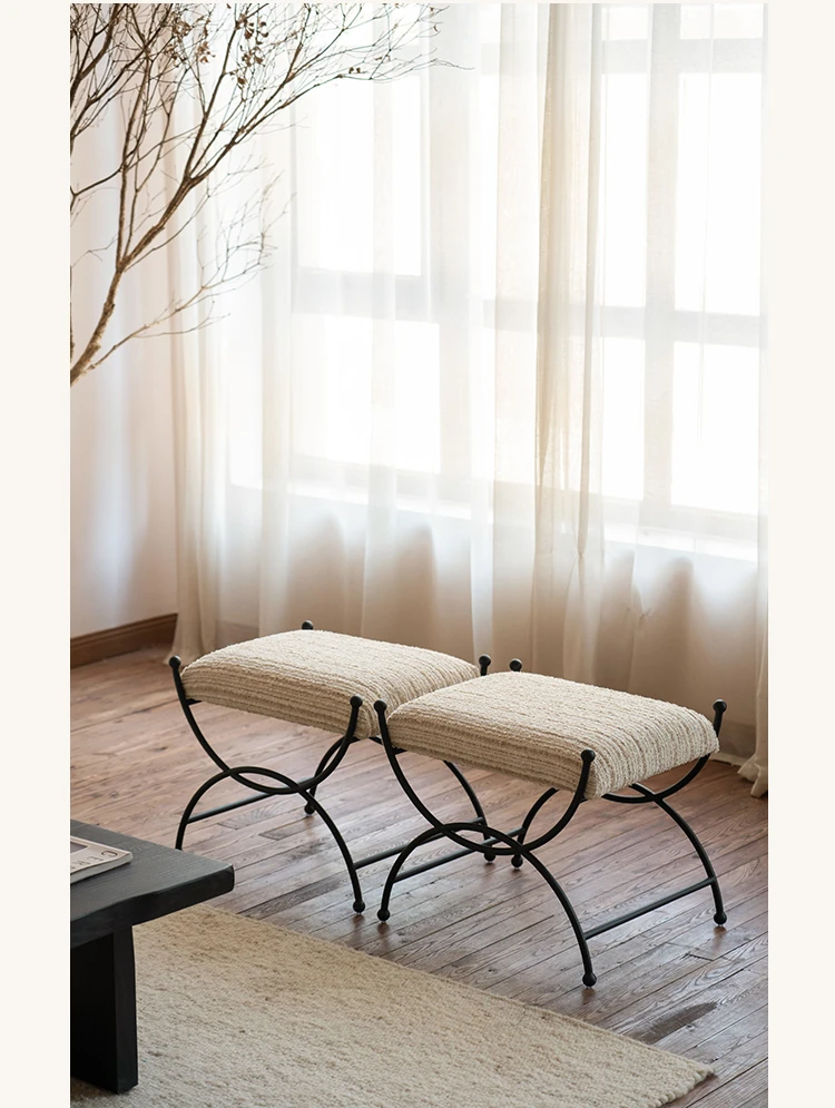 シュファン正規品 UUスツール フランス風レトロ玄関用靴替えスツール 金属製ソフトパッド付き 脚踏み小ソファスツール メイクアップスツール