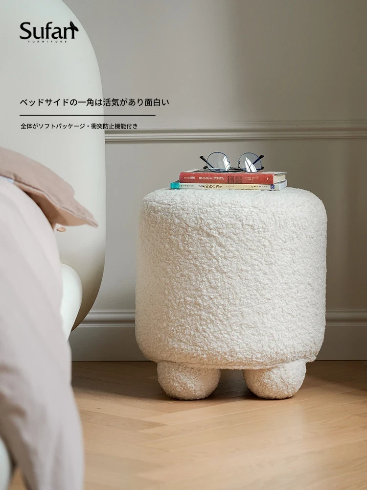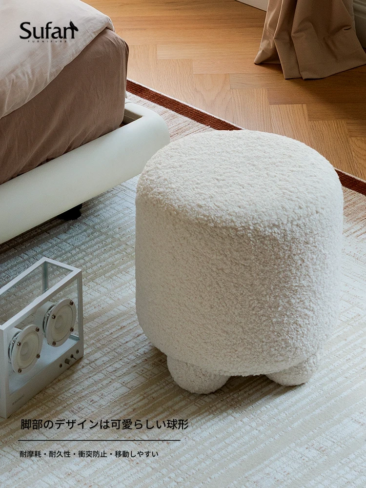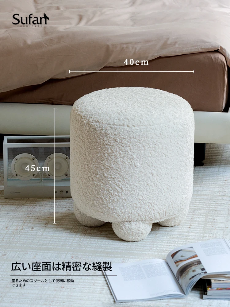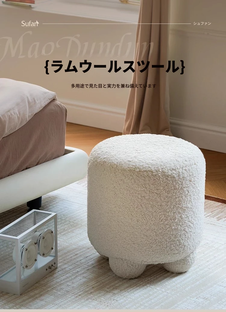 シフォンラムスキンオットマン/優雅なフレンチスタイルオットマン/リビングや寝室のベッドサイド、ベッドフットにぴったりのカーペットオットマン!快適さとスタイルを両立したアイテム。