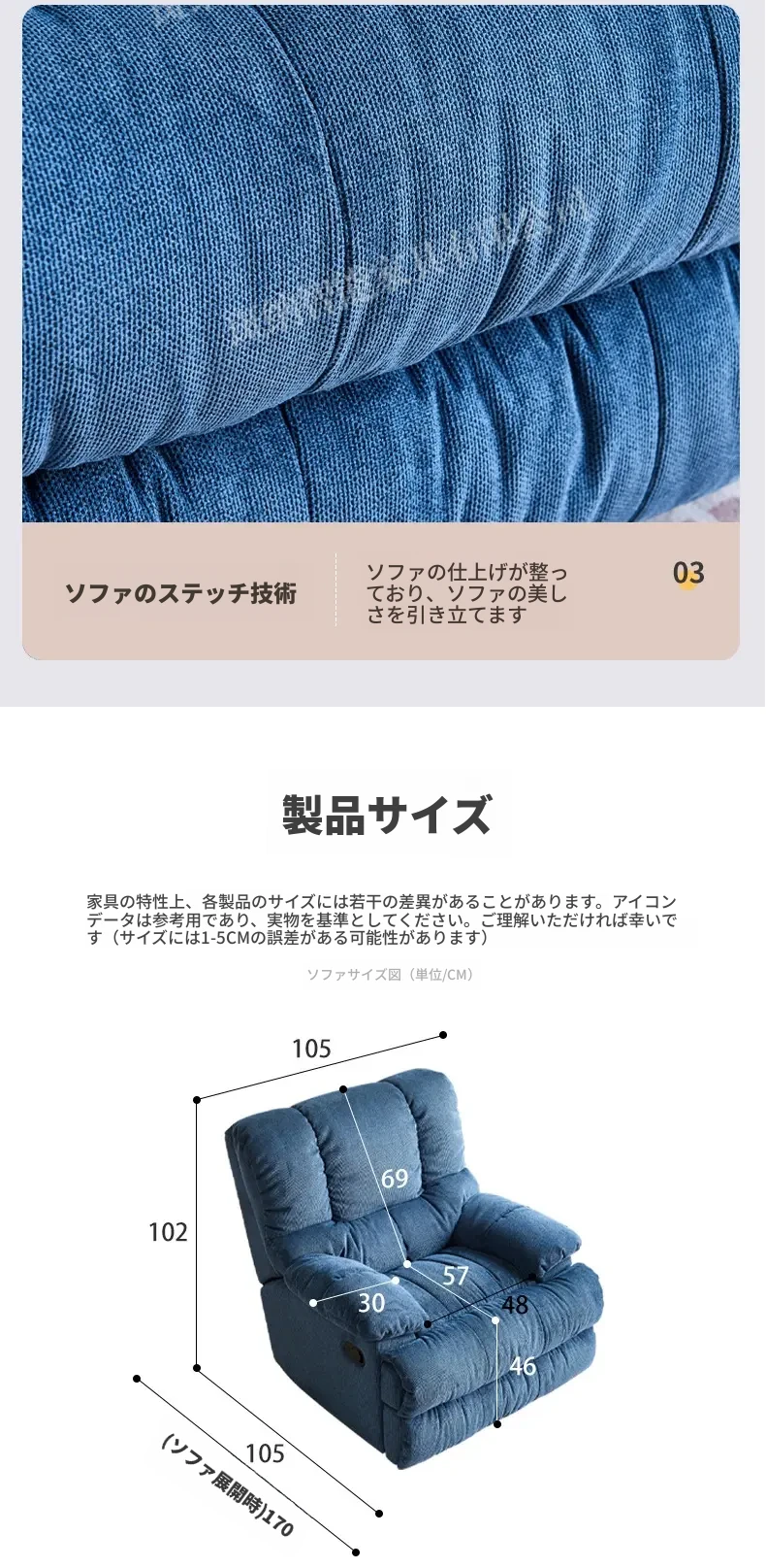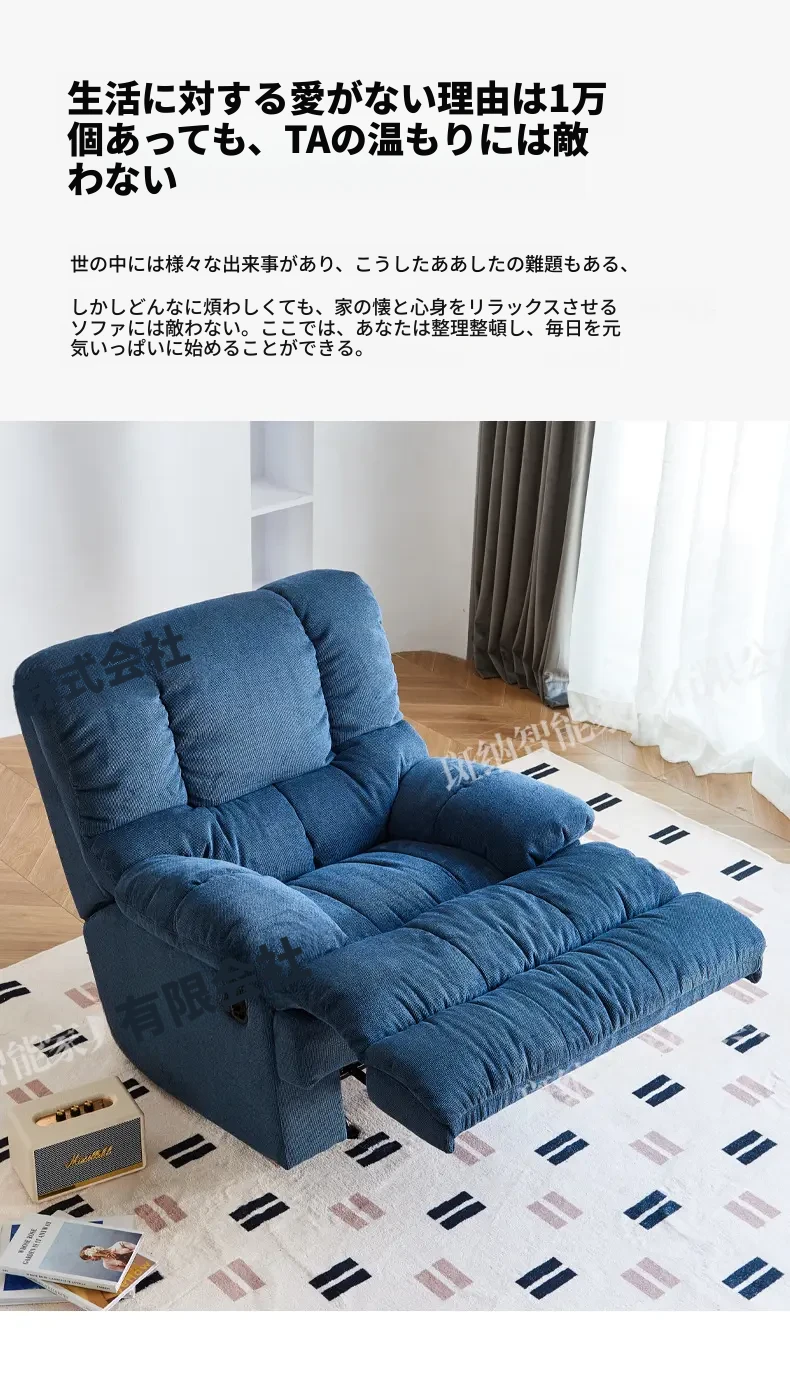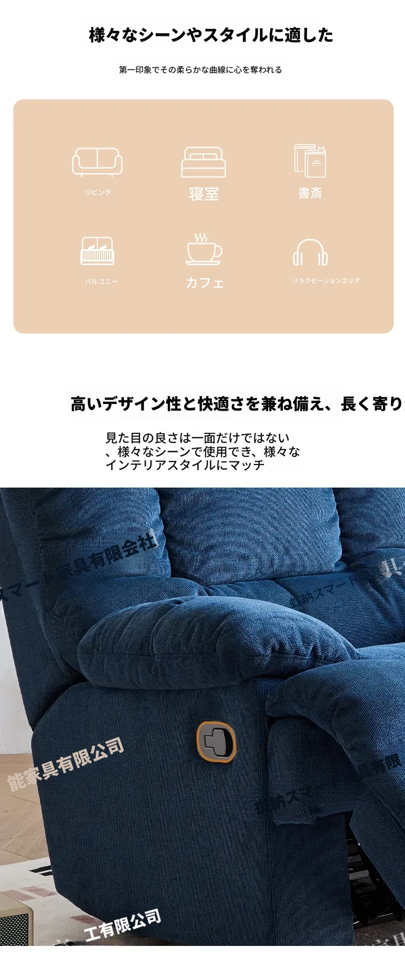 山因莱克ムおじさんの人気ソフト一人掛けソファ - モダンなリビングにぴったり!揺れも回転も楽しめる多機能チェアで、リラックスした時間をお届けします!