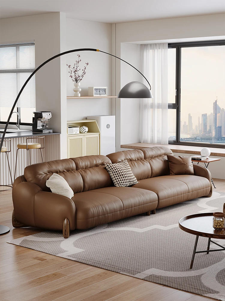 中古風レトロ本革ソファ|イタリアンミニマルデザイン|最高級牛革使用|小型リビングに最適なシンプルな雲型ソファ|洗練されたスタイルでお部屋を彩ります!