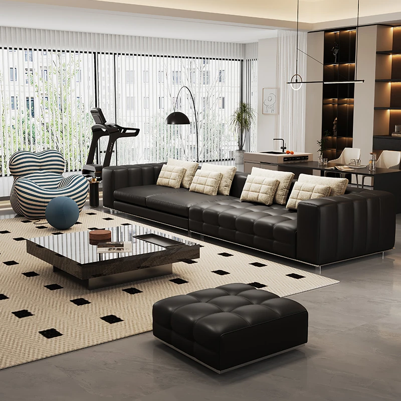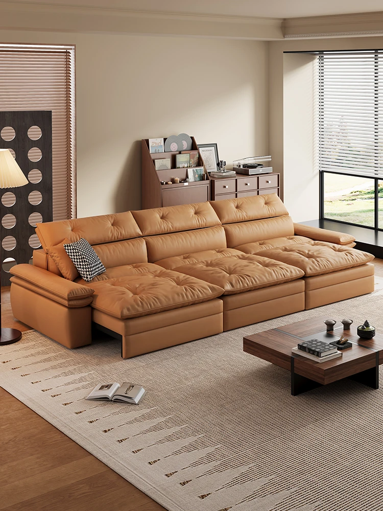 イタリアンミニマリズム真皮ソファ - ラグジュアリーなリビングに最適な大サイズ、調整可能な背もたれ付きのコーナーコンビネーションソファで、ヴィラや広々とした空間にぴったり!