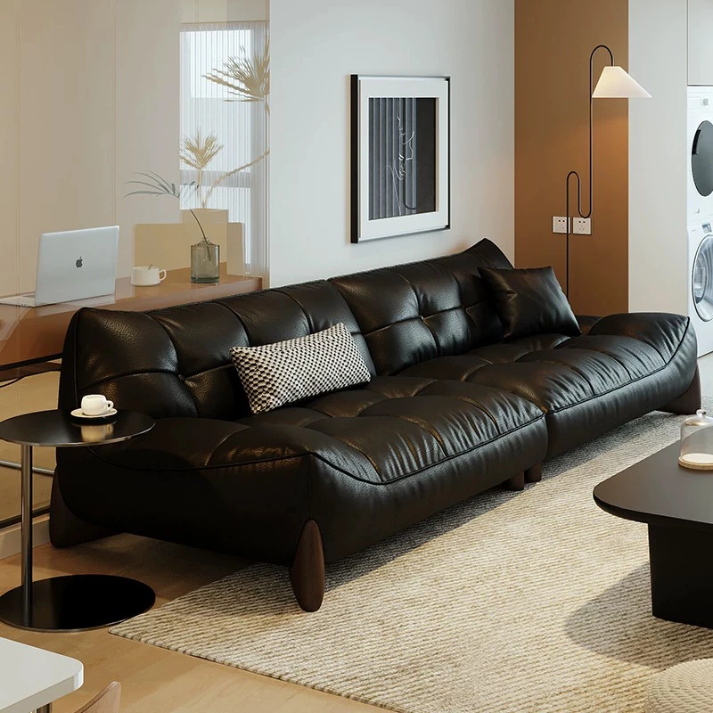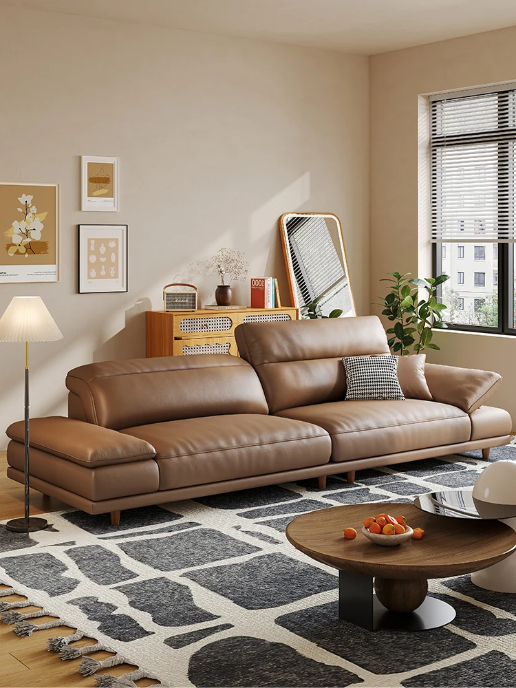 イタリアンミニマリスト本革ソファ - スモールスペースに最適な直線デザイン。家庭用の軽奢でシンプルなレザーソファ。洗練されたスタイルで、心地よいリビング空間を演出します!