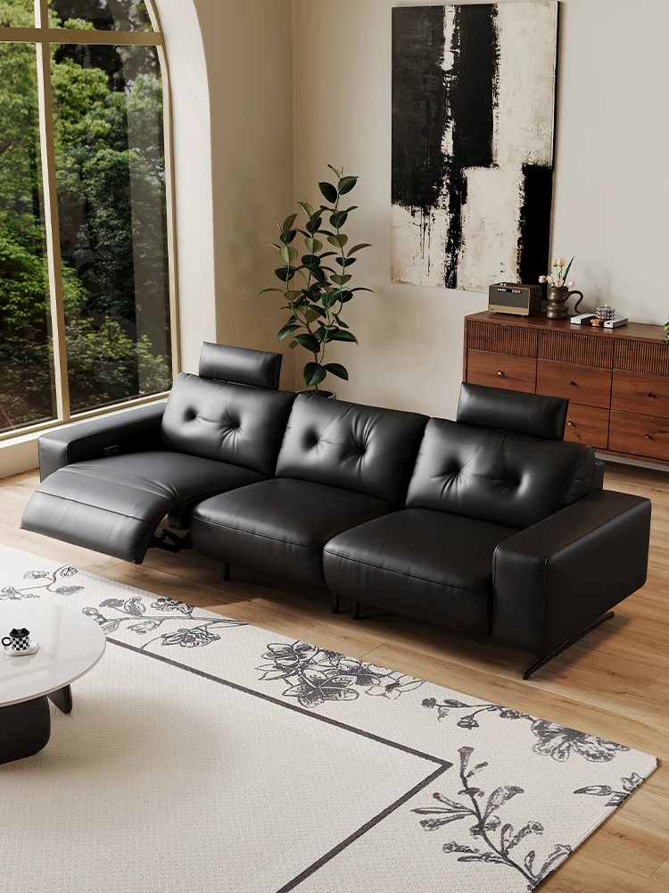 イタリアンラグジュアリー 本革ソファ 多機能電動リクライニング 3人掛け ブラックシンプルデザイン 大小様々なリビングに最適!快適さとスタイルを兼ね備えた一品。