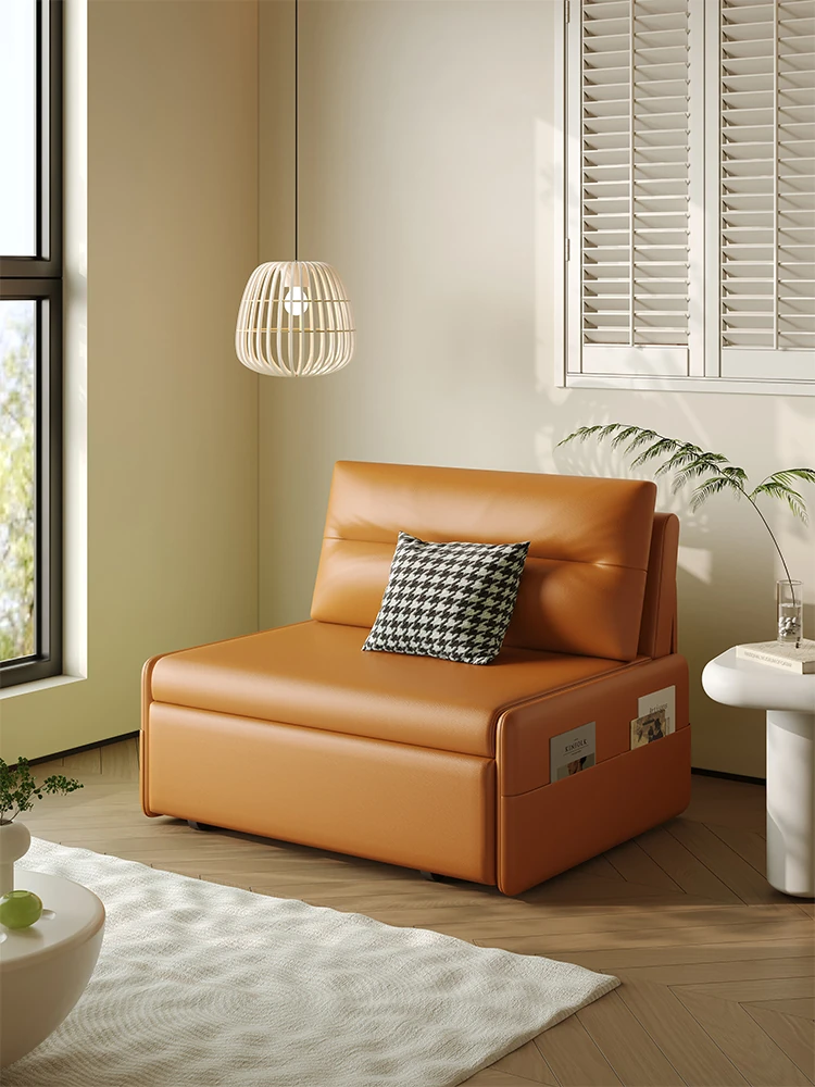 アートスタイルの千層クッキー電動ソファベッド - 伸縮可能な多機能ソファ、小型リビングに最適、壁に寄りかからないスマートデザイン!