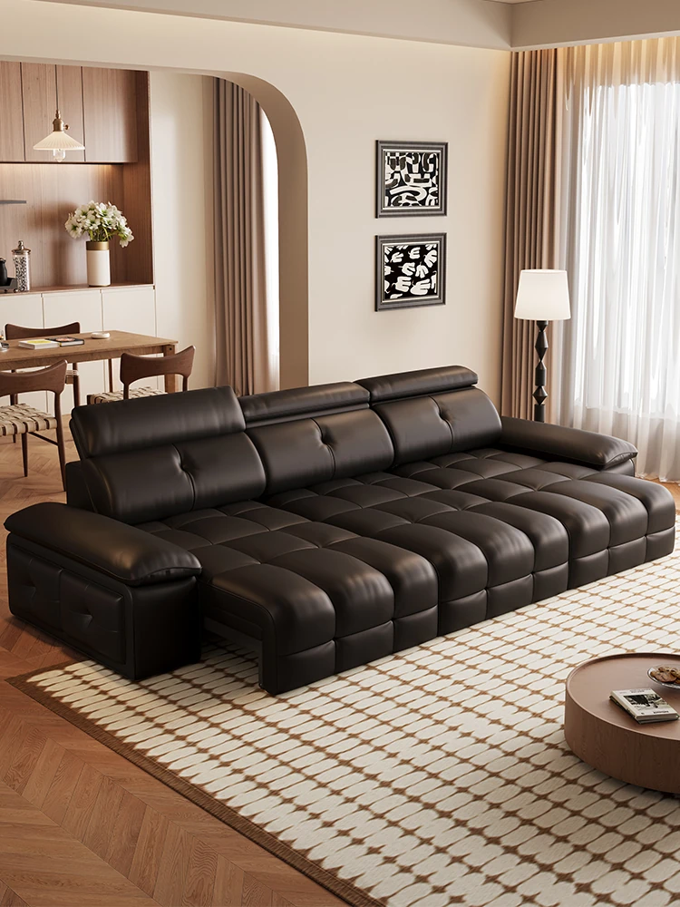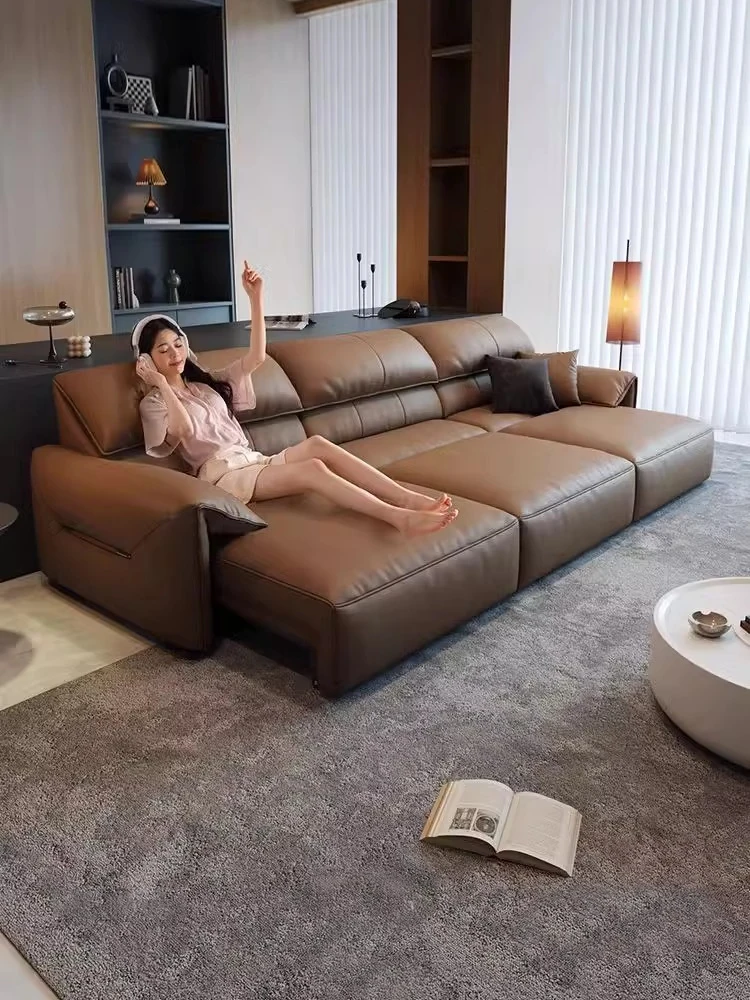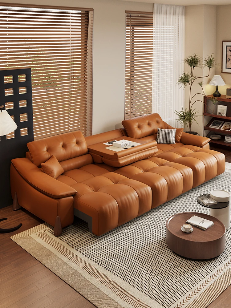 壁に依存しない家庭用シアター電動イタリアンミニマリストソファー - 高級本革使用、スマート機能搭載、マルチユースデザインでリビング空間をスタイリッシュに演出!