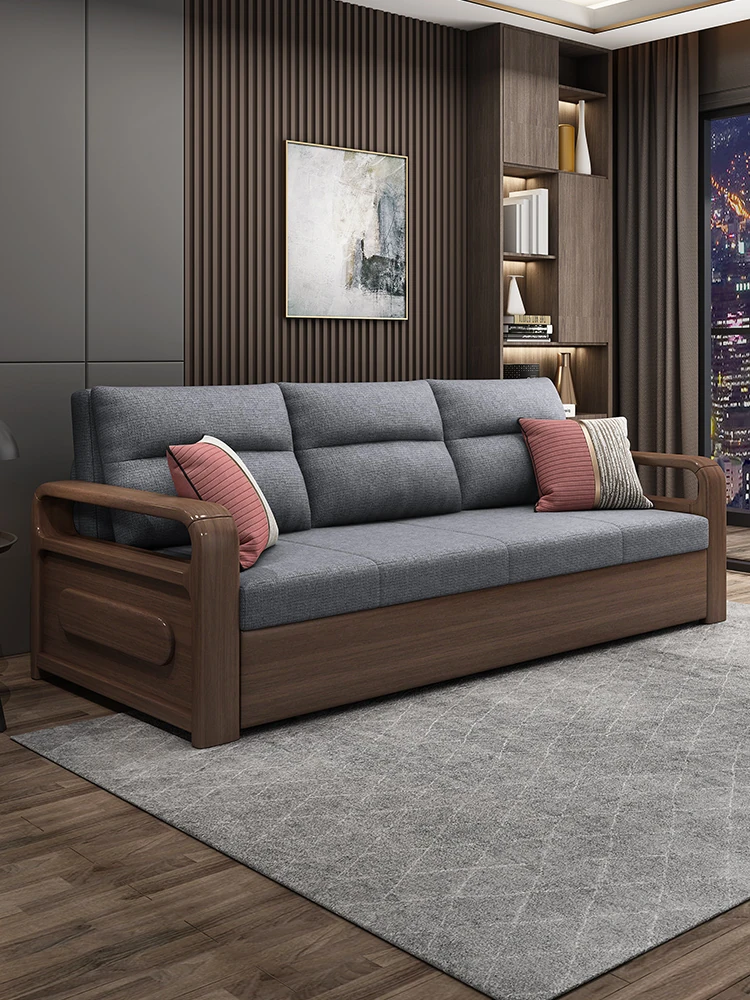 北欧スタイルの折りたたみ式ソファベッド - 小型アパートに最適!デュアル機能の収納付きファブリックソファ、グレー色でスタイリッシュな空間を演出します。