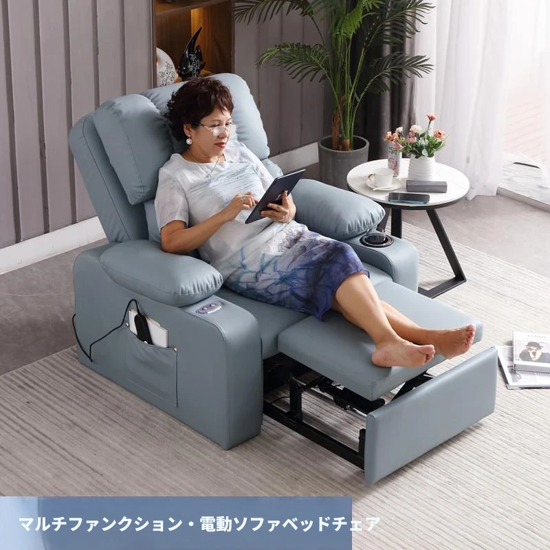 多機能電動一人用ソファベッド|高齢者向け|バルコニーやサロンに最適|貴妃型リクライニングチェア|コンパクトな皮革製|快適さとスタイルを両立した小型家具!
