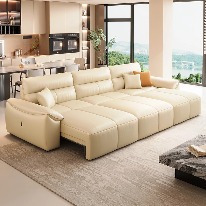 エグゼクティブ機能付き電動調整ソファ|イタリアンモダンシンプルデザインの本革伸縮多機能ソファベッド|快適なリビング空間を演出!