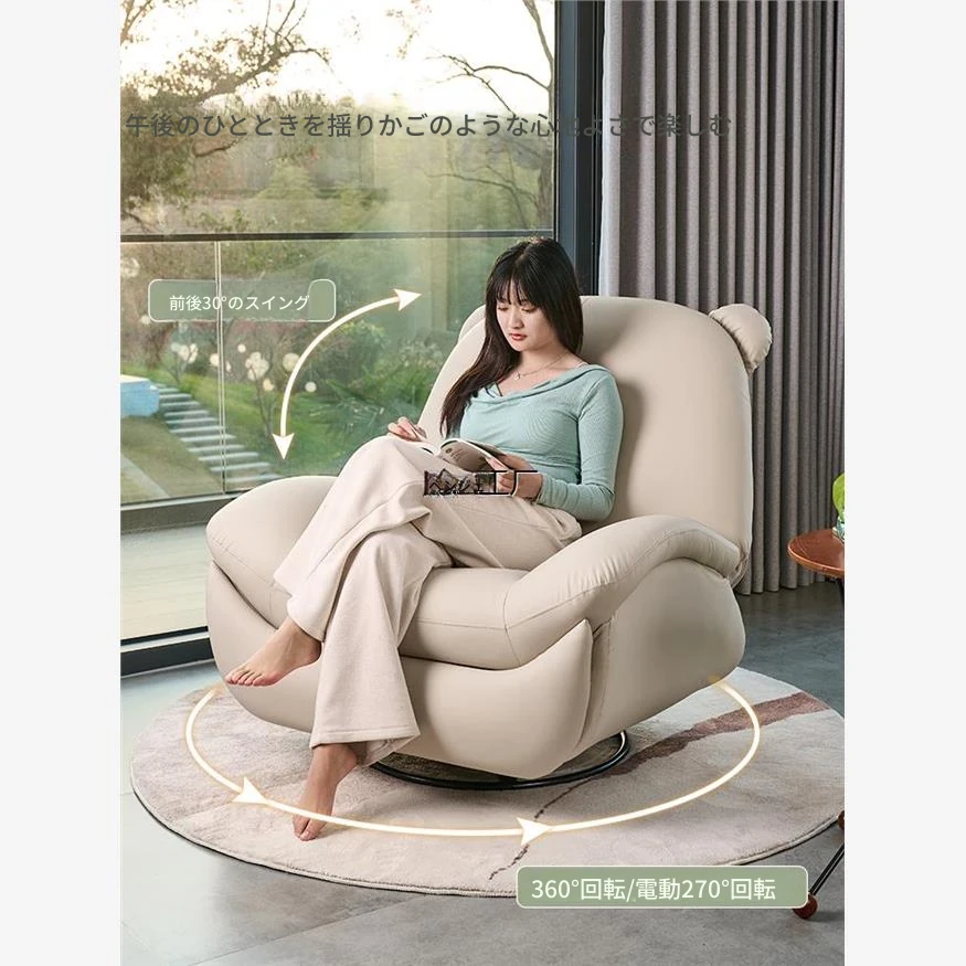 山因莱克ムおじさんの人気ソフト一人掛けソファ - モダンなリビングにぴったり!揺れも回転も楽しめる多機能チェアで、リラックスした時間をお届けします!