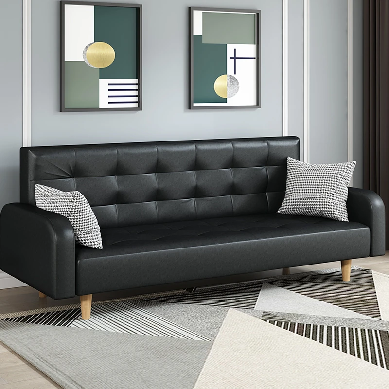 コンパクトなリビングに最適!折りたたみ式PUレザーソファベッド - 賃貸アパートにぴったりの2wayデザインで、スタイリッシュに空間を有効活用!