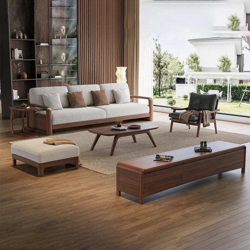 新感覚の中式ブラックウォールナット無垢材リビング用ソファー Y-T662# - シンプルで洗練されたデザイン、冬も夏も快適に使える2WAYタイプ!お部屋をスタイリッシュに演出します。