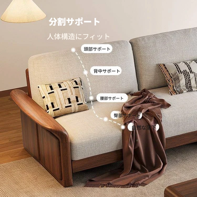 梵辰日式布製ソファー 小型リビングに最適!2人掛け・3人掛け対応のシンプルモダンな組み合わせ家具。丈夫な無垢材とアイアンフレームで、スタイリッシュな空間を演出します!