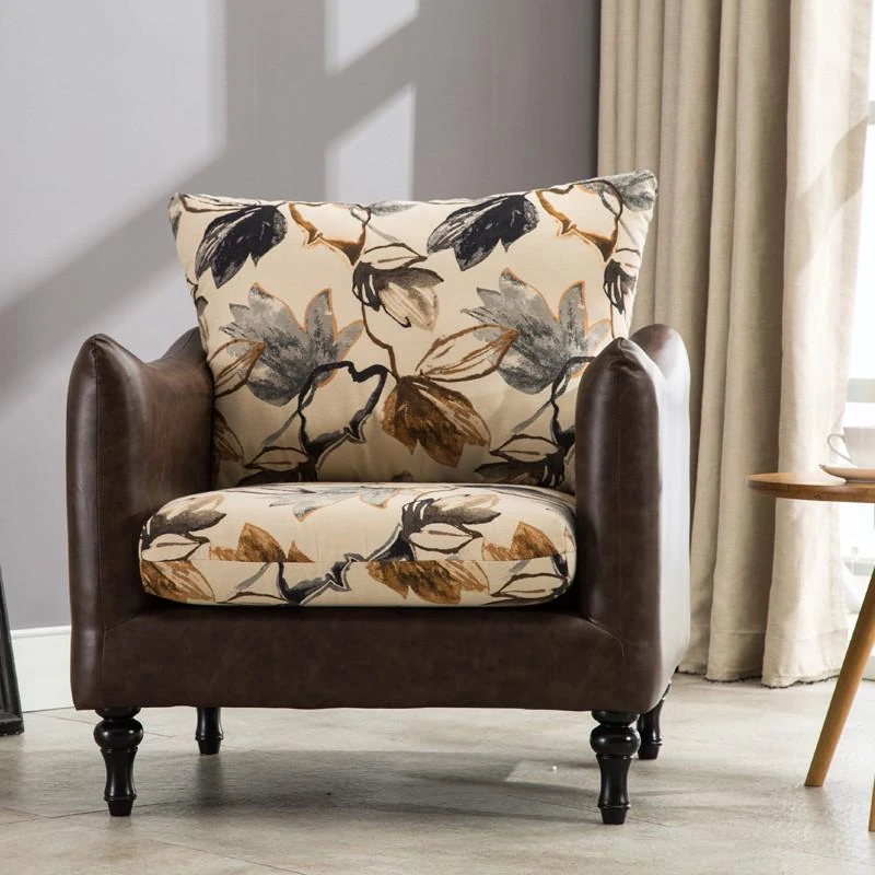 アメリカンカントリースタイルの布製一人掛けソファー - リビングや寝室、カフェにぴったりなレトロなレザーソファ、くつろげるタイガーチェア!あなたの空間に温かみとスタイルをプラス!