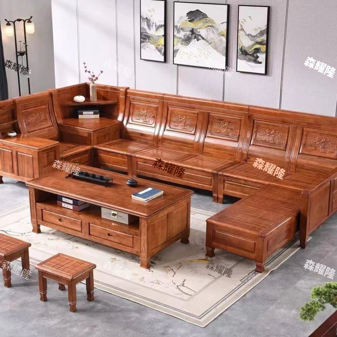 香樟木製の実木ソファセット - クラシックなデザインのコーナー付きデイベッド、冬夏兼用、彫刻デザイン、収納機能付きの中華スタイル。おしゃれで機能的なリビング空間を演出!