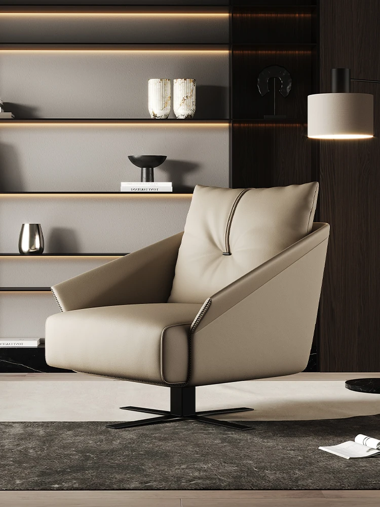 イタリアンミニマリスト・ラウンジチェア|高級デザイナーアート家具|リビング・オフィス・書斎に最適|本革回転シングルチェア|スタイリッシュで快適な空間を演出します!