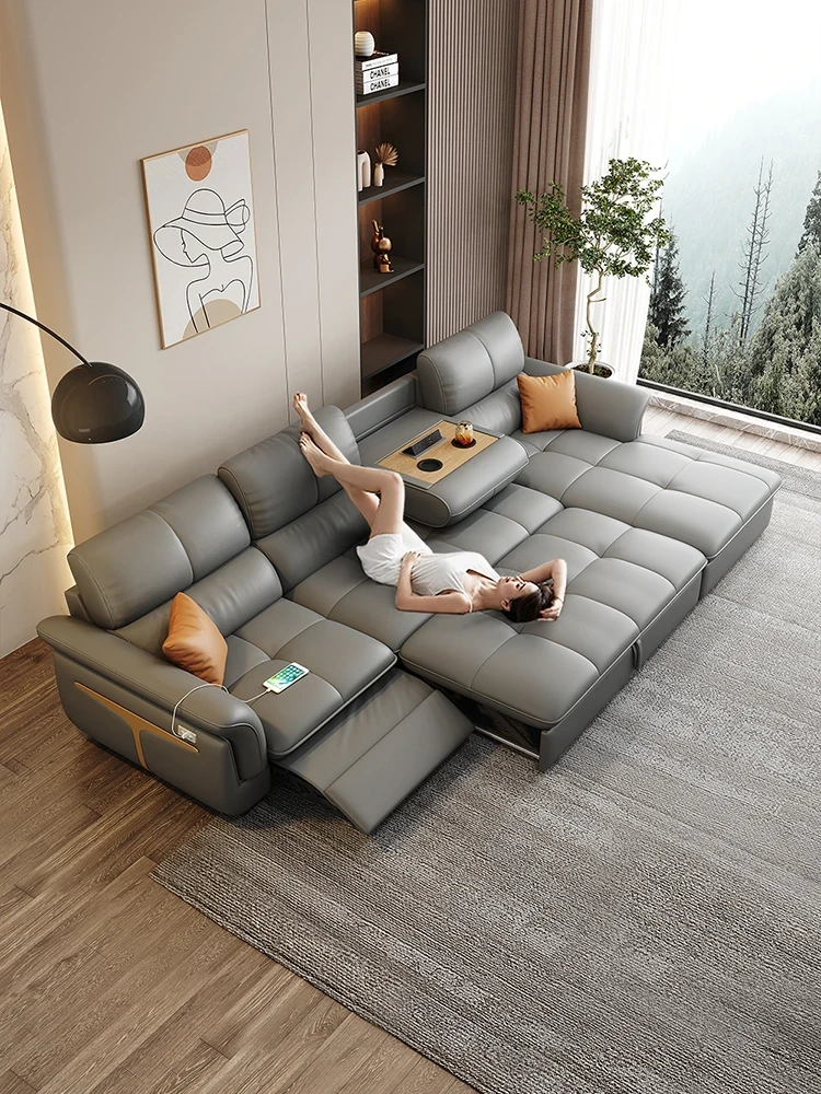 2025年新登场!本革製のモダンシンプルな電動多機能ソファベッド。3~4人用のコンビネーションで、快適さとスタイルを兼ね備えたリビングの必需品!