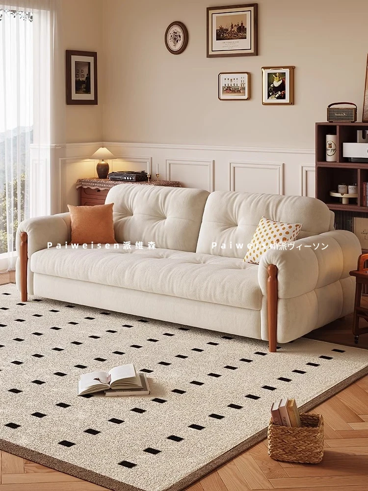 2024年新作!フレンチクリーム風折りたたみ二用途ソファベッド - 小型リビングに最適な多機能無垢材ソファ。快適さとスタイルを兼ね備えた、あなたの理想の空間を演出します!