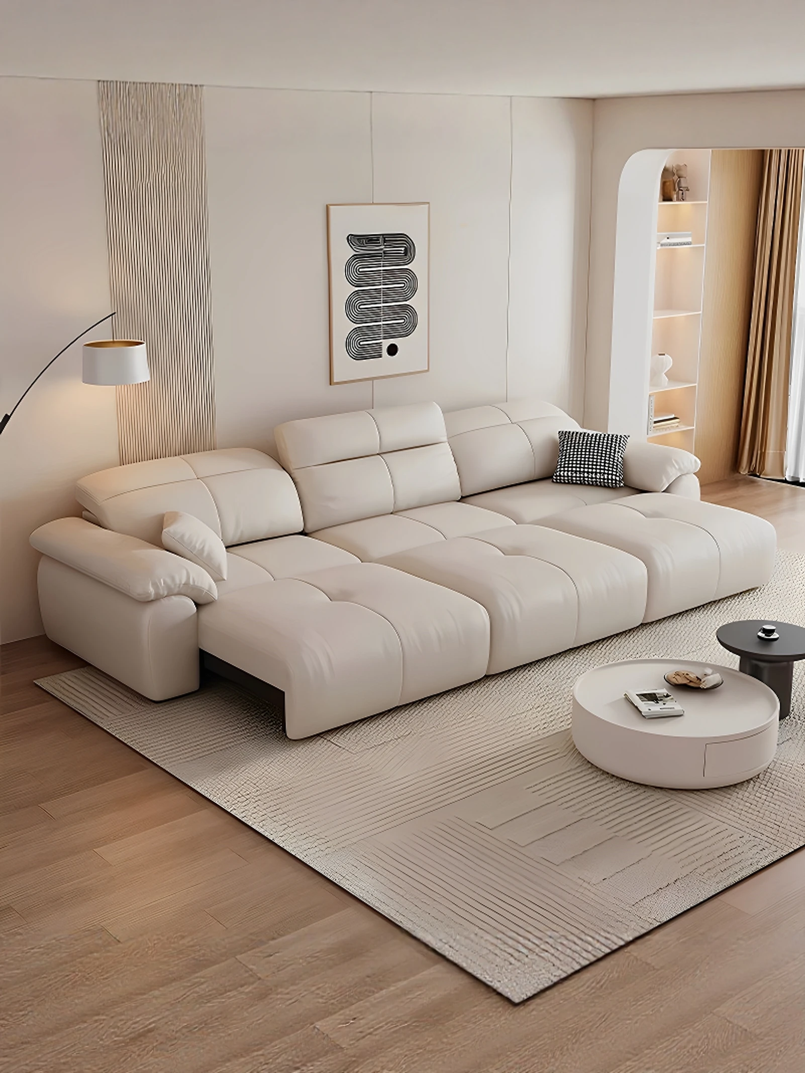 Modern Minimalist Dual-Use Small Space Living Room First-Class Leather Electric Sofa Bed with Chaise Lounge