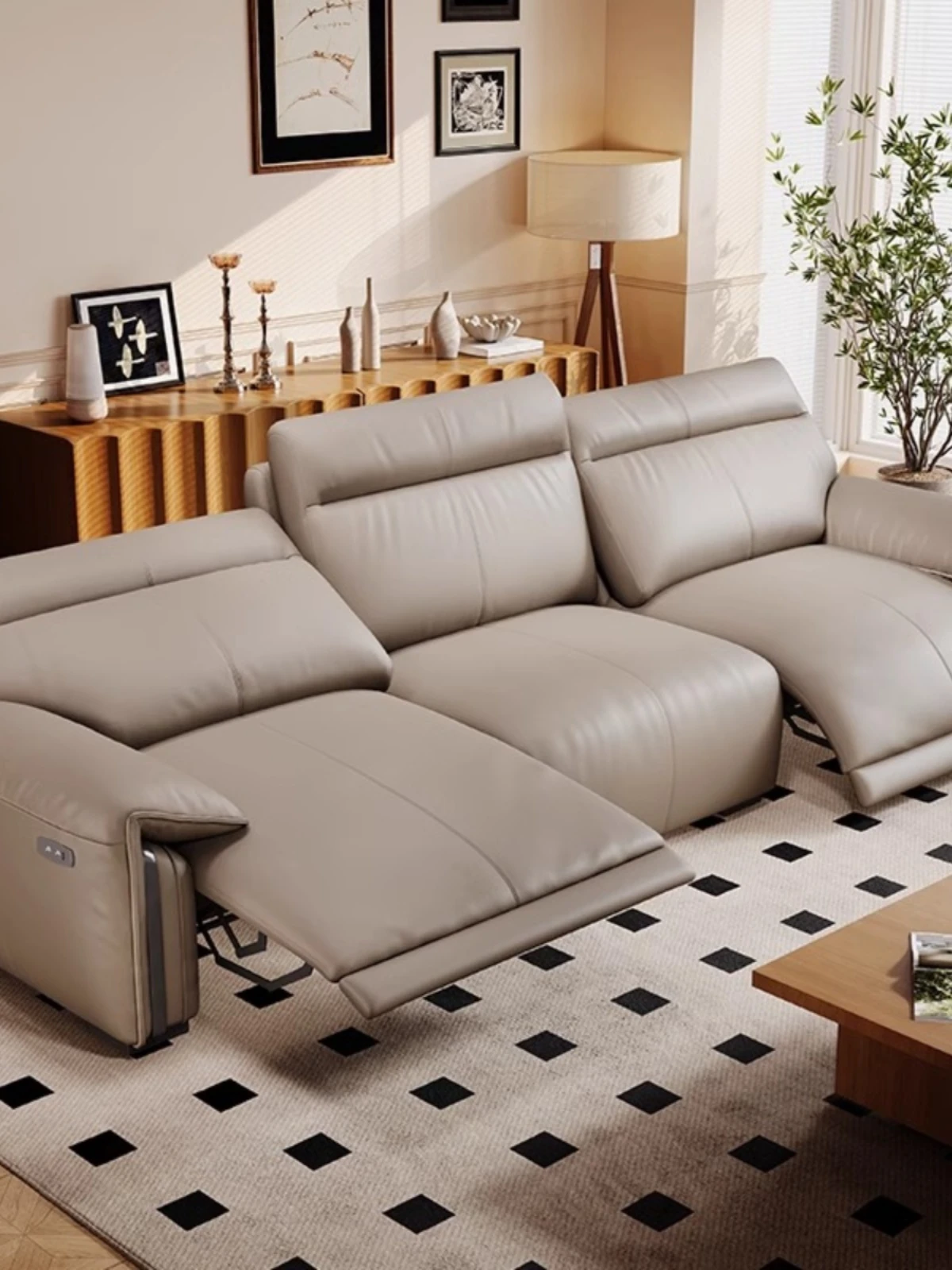 Modern Italian Minimalist Electric Leather Sofa for Small Living Rooms – Made with First Layer Cowhide, Featuring Retractable Functionality for Ultimate Comfort and Style.