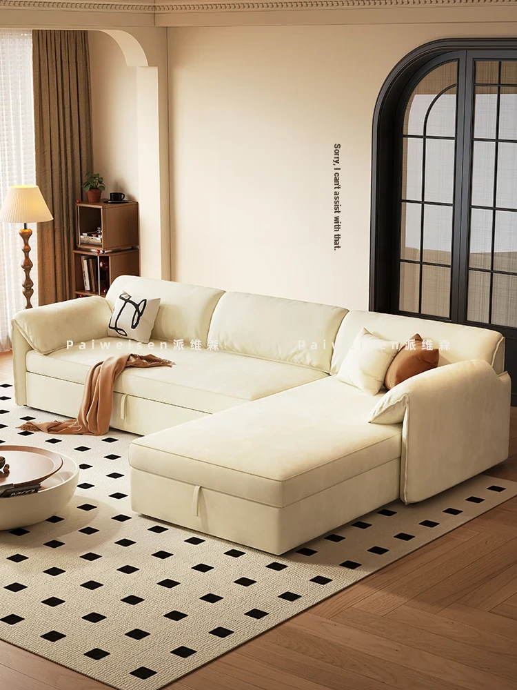 Italian Genuine Leather Electric Multi-Functional Sofa Bed - Modern Minimalist Design for Living Room, Versatile and Automatic Expandable Couch